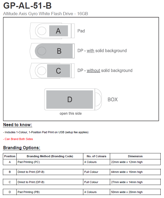 Classic flash drive with a white, soft-touch, lacquered base and a metal swivel in a choice of colours. It has 16GB of memory, with a USB 2.0 interface.