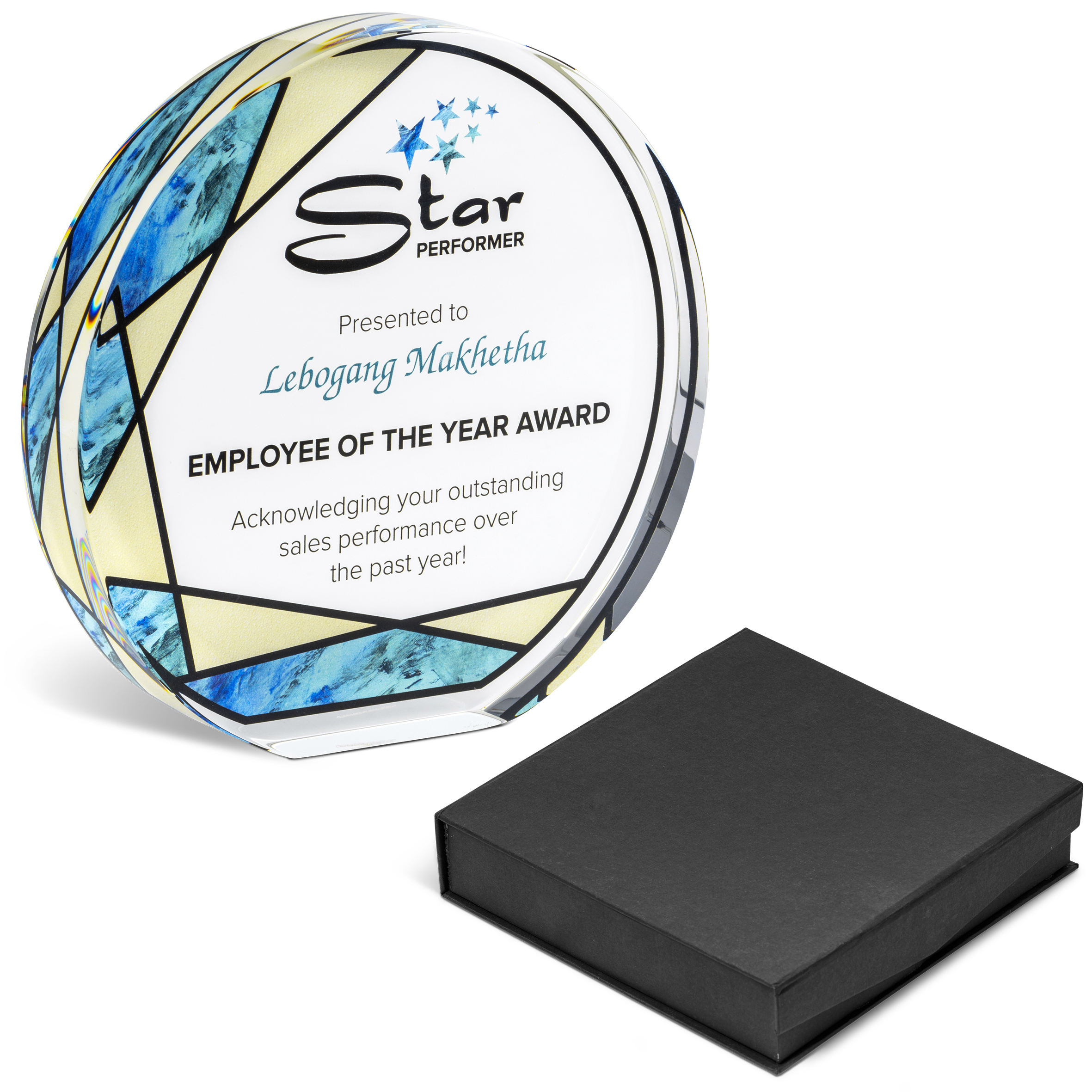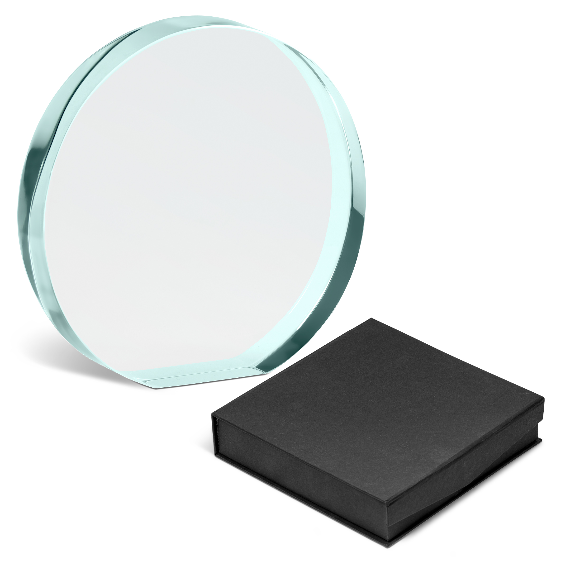 Show your appreciation or recognition with this round optical glass award with a sturdy, flat base. Your message can be conveyed through full colour digital printing or more subtle laser engraving.