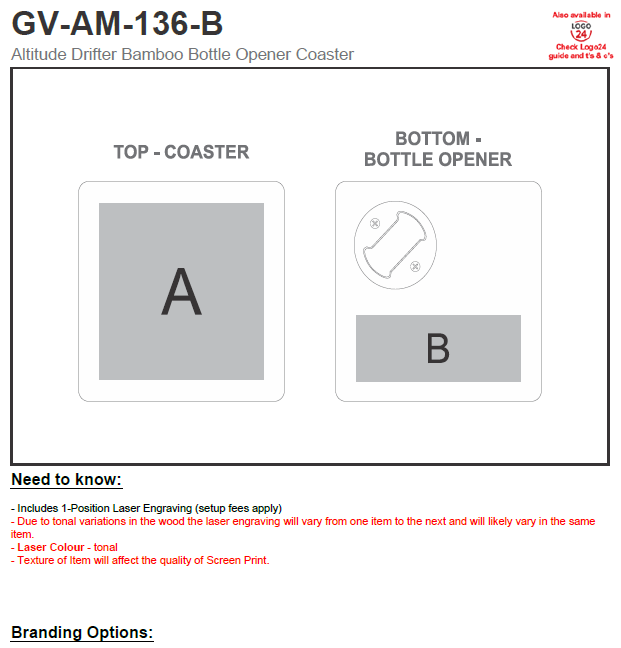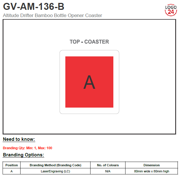 Made from sustainable bamboo, this 2-in1 item serves as a bottle opener as well as a drinks coaster. Laser engraving branding has an attractive yet subtle tone on tone effect.