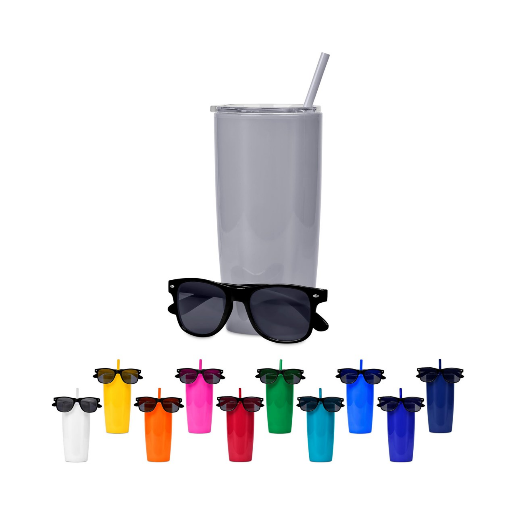 Stay fresh and hydrated as you soak up the Summer sun, with this fun combination of a double-wall tumbler with a pair of black sunglasses. The sunglasses are packed into the tumbler, which is packaged in a natural kraft gift box.