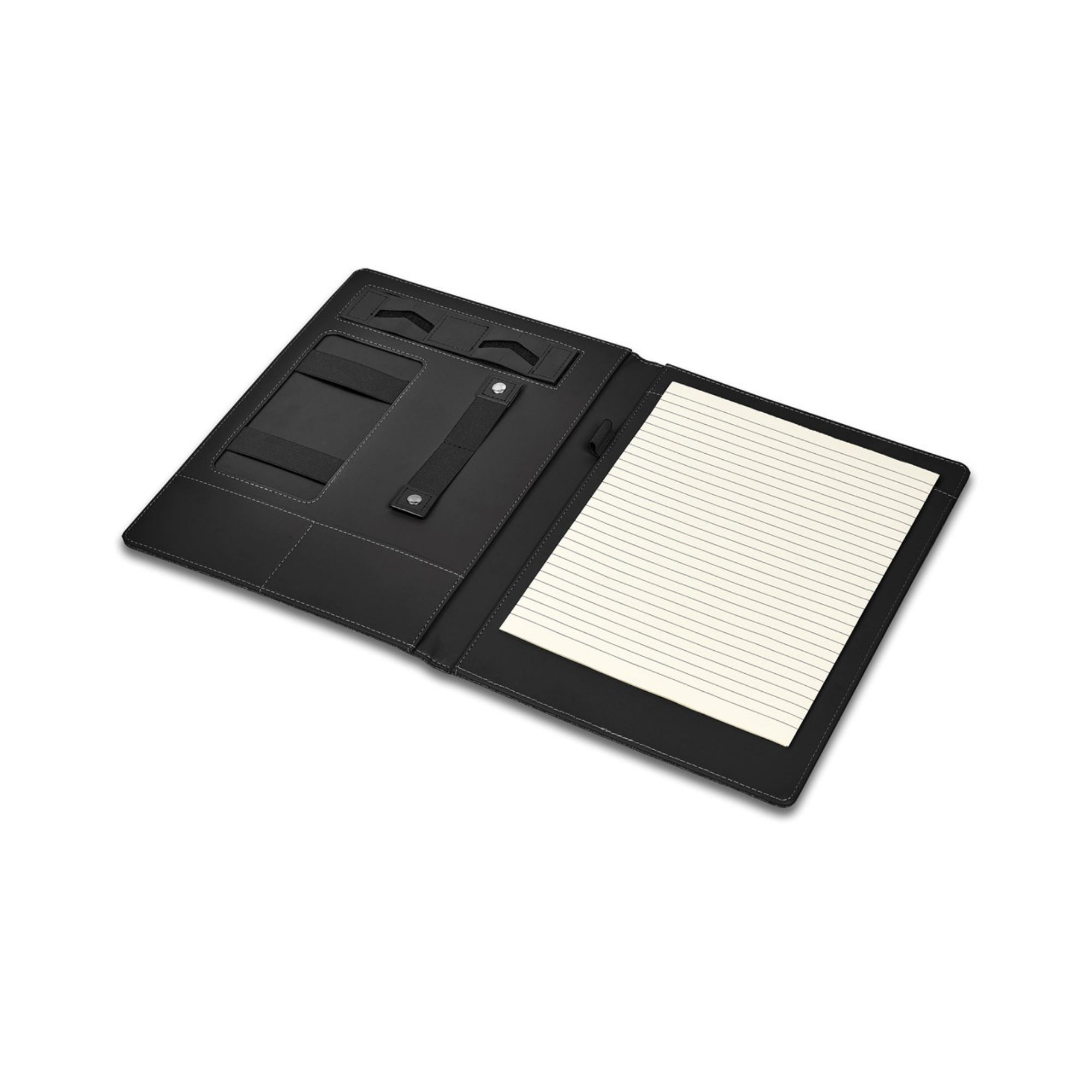 - inner: phone stand, slots for cables, two card holders, pen loop