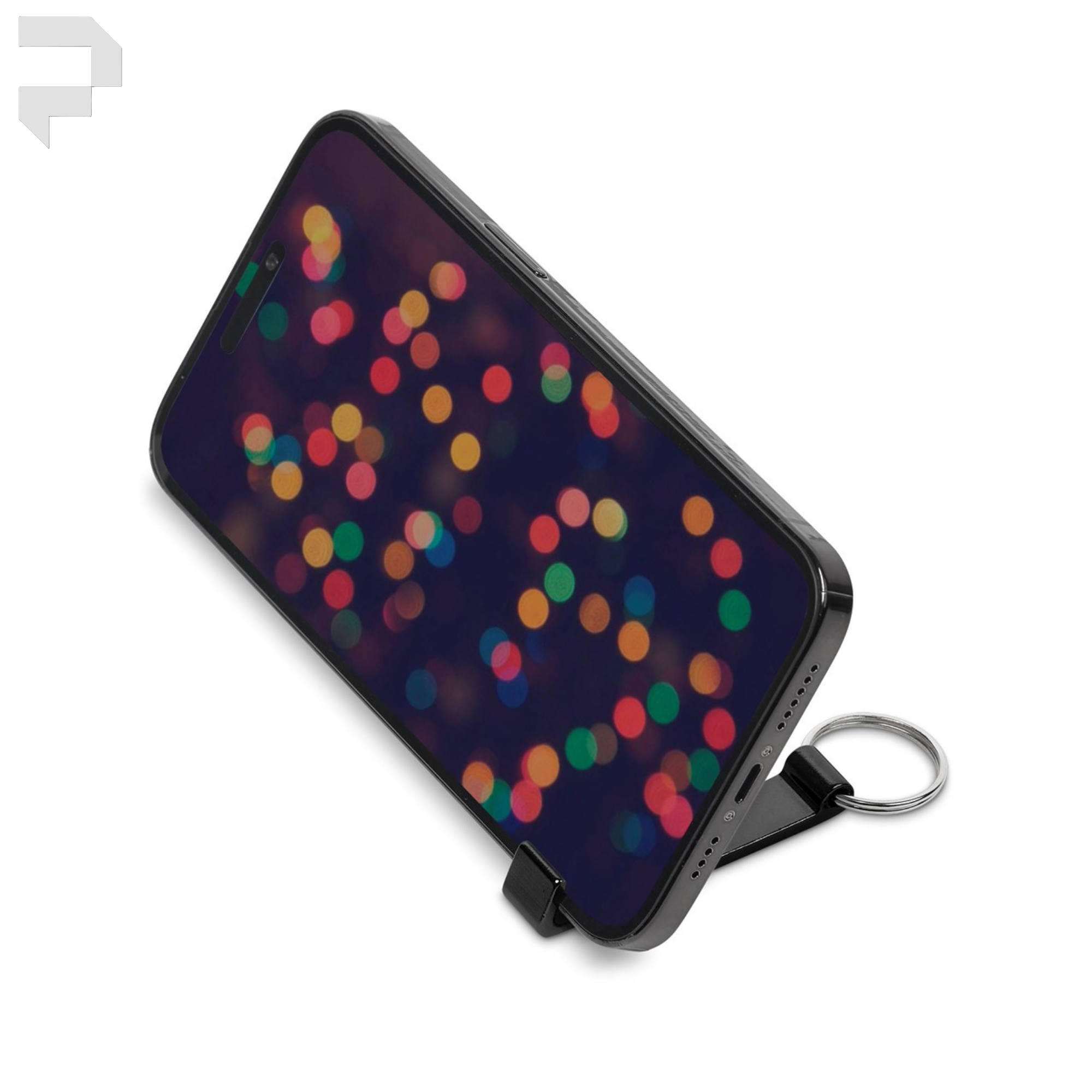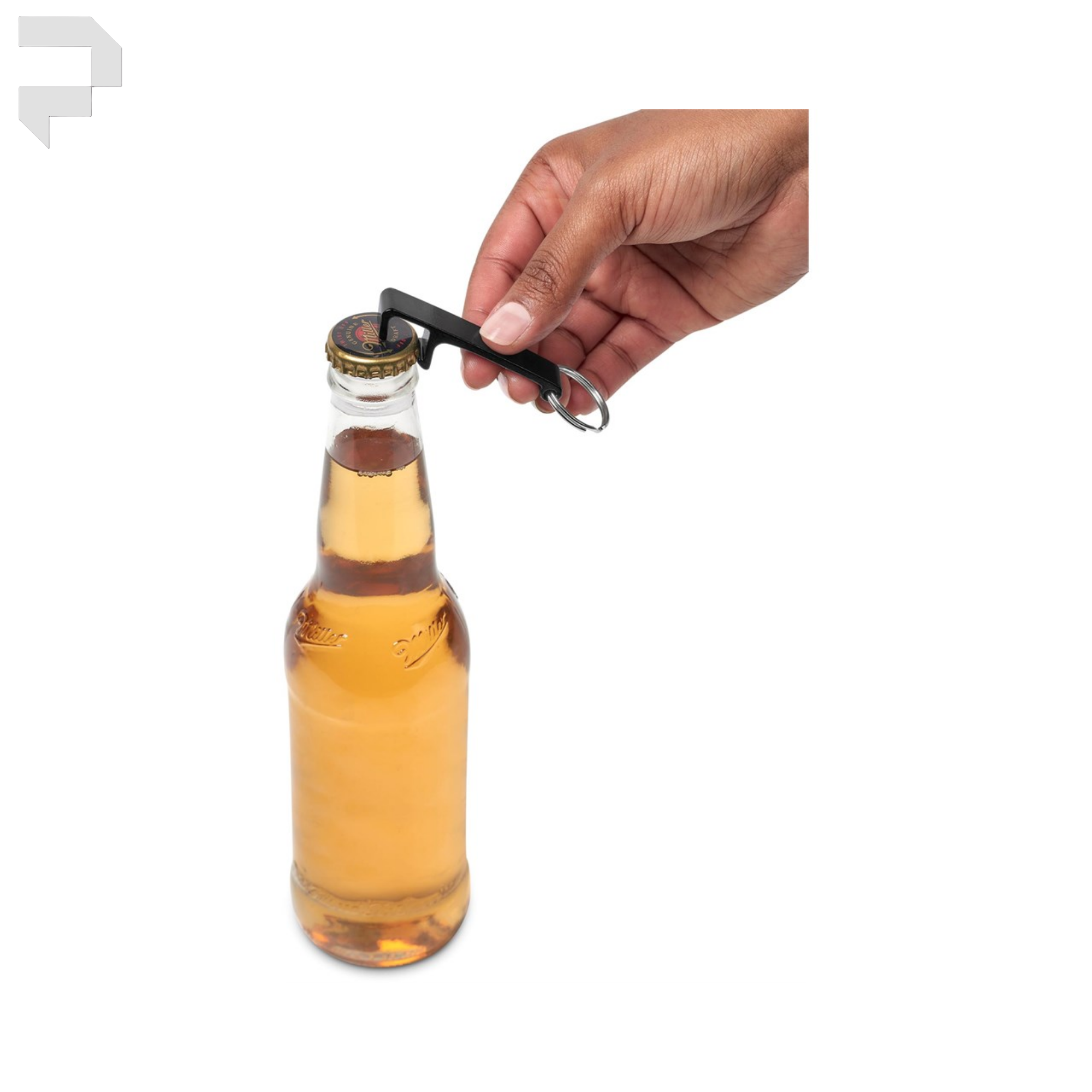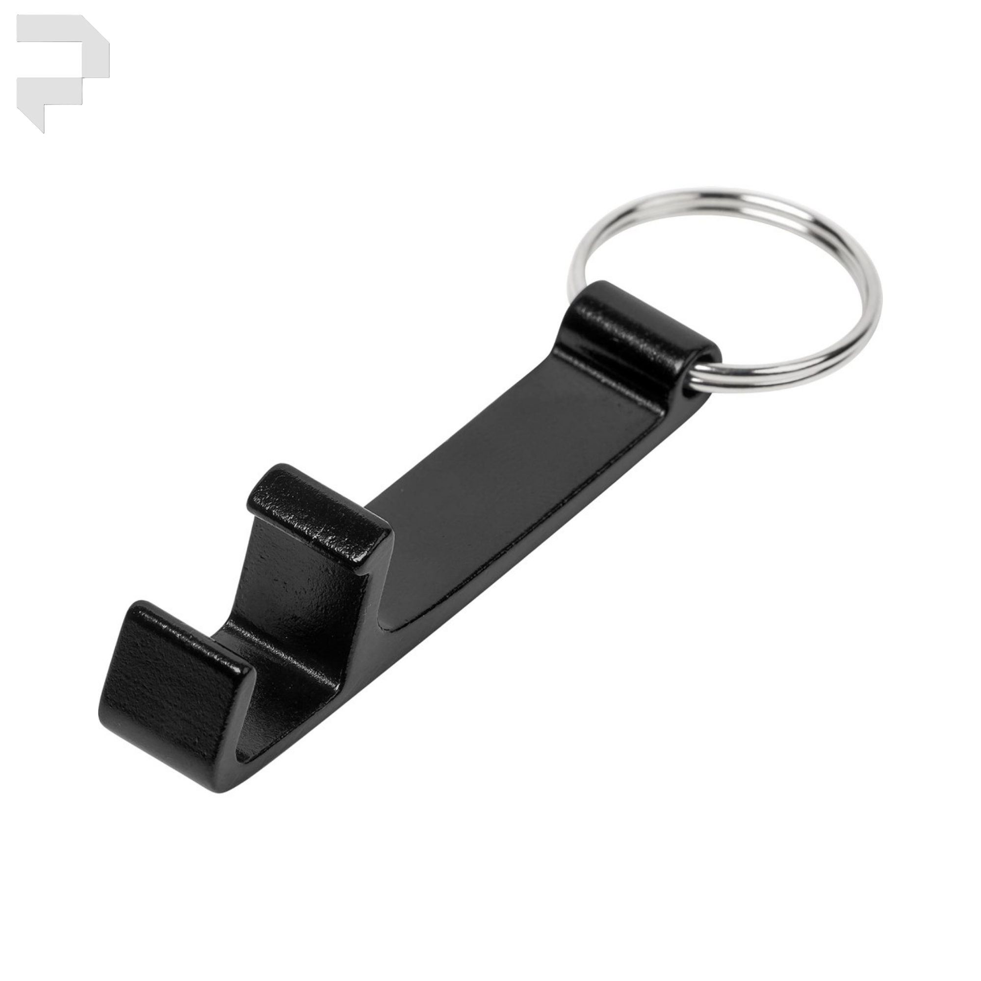 - functions as a keyholder, a bottle opener, a beverage can tab lifter and a phone stand
