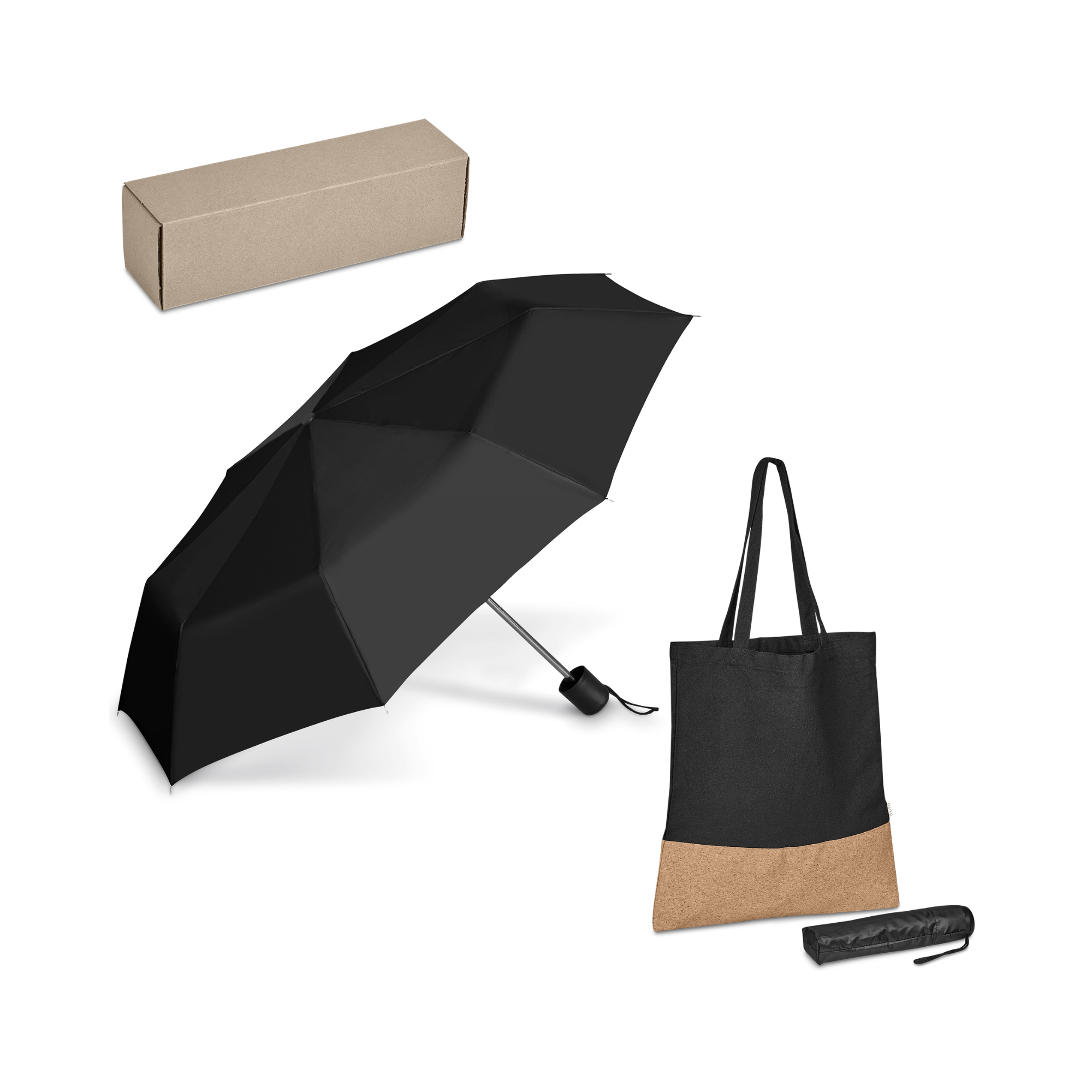 Be prepared for sunny or rainy days with this gift set consisting of a durable cotton canvas shopper and a compact umbrella.