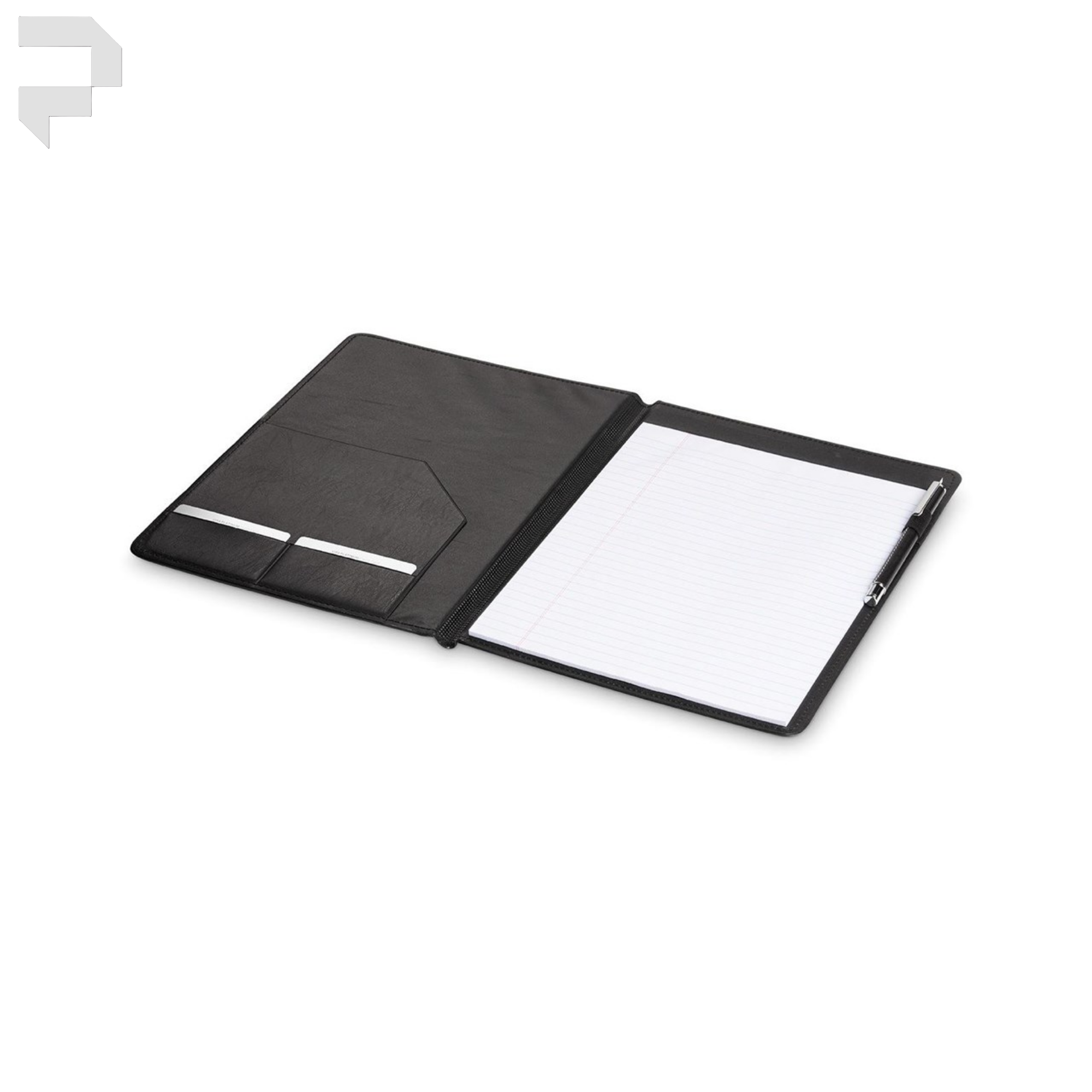 This slim folder features a pebble grain PU surface on the outside and includes a document slot, two card slots, and a pen loop on the inside.