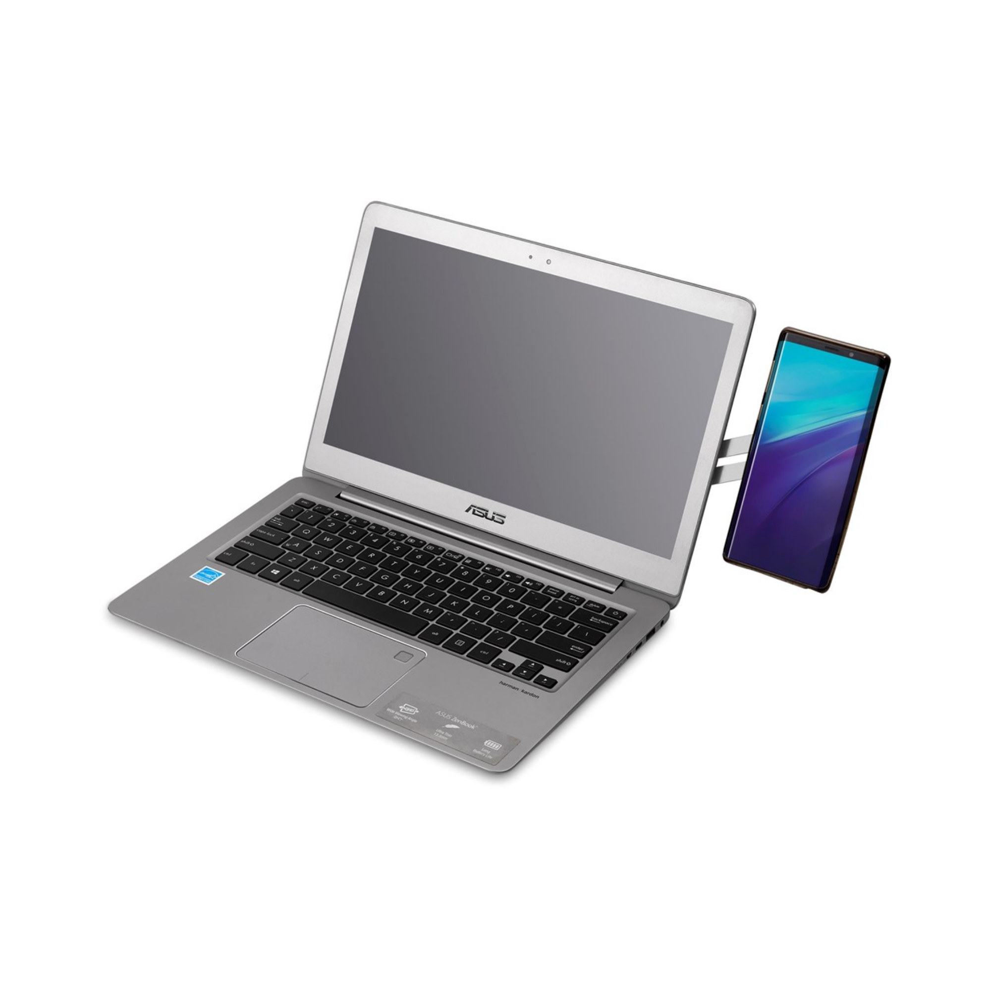 Stick this flat, foldable magnetic phone holder to the top of your laptop, and stick the metal disc to the back of your phone. This will allow you to view your phone alongside your open laptop screen – especially useful if you use your phone in conjunction with your laptop.