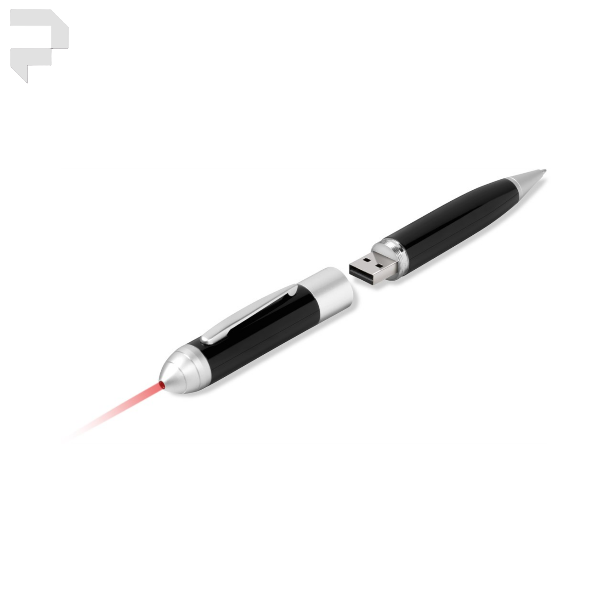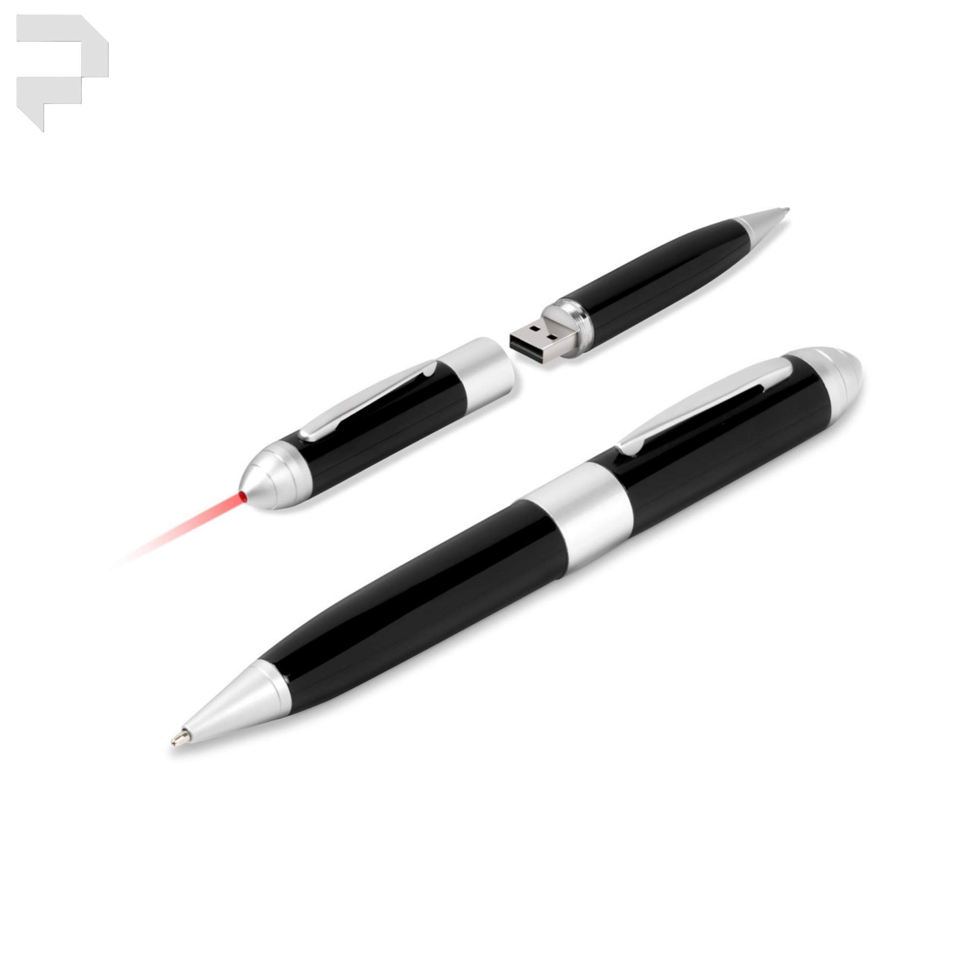 A 3-in-1 pen which enables you to store your files and presentations on the flash drive, and features a pen and a laser pointer.