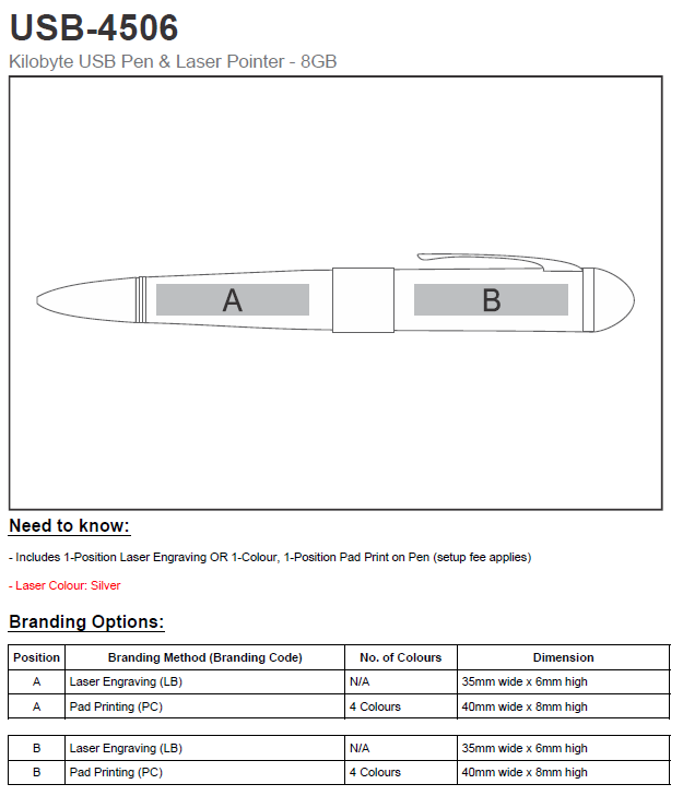 Kilobyte Flash Drive Pen & Laser Pointer – 8GB