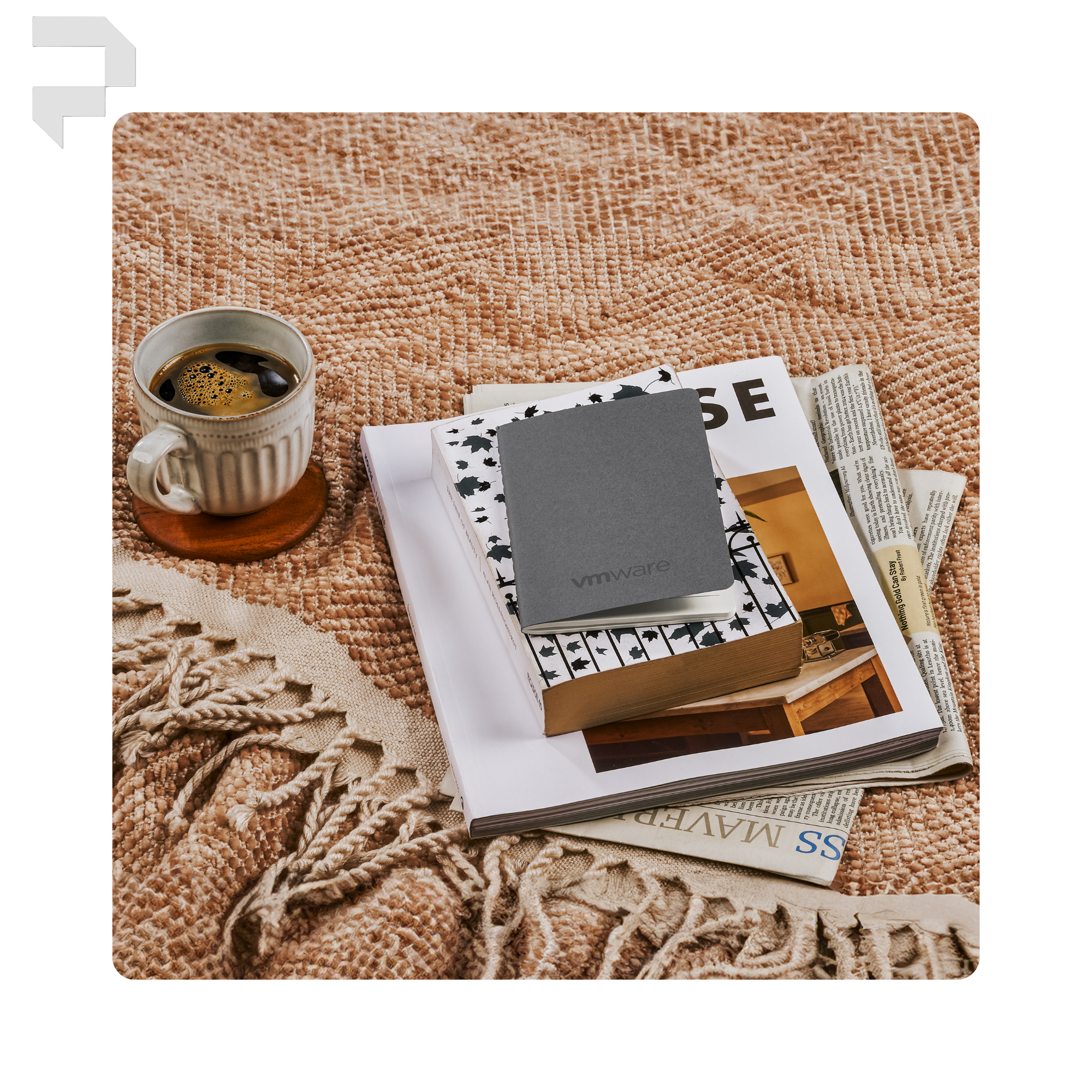 The white FSC logo printed on the back cover of the notebook is printed during manufacture. The branding method necessary to print a logo on the front cover is different, and printing in white is susceptible to dye migration. White logo branding is therefore not offered on the coloured notebooks and is only available on the natural notebooks.
