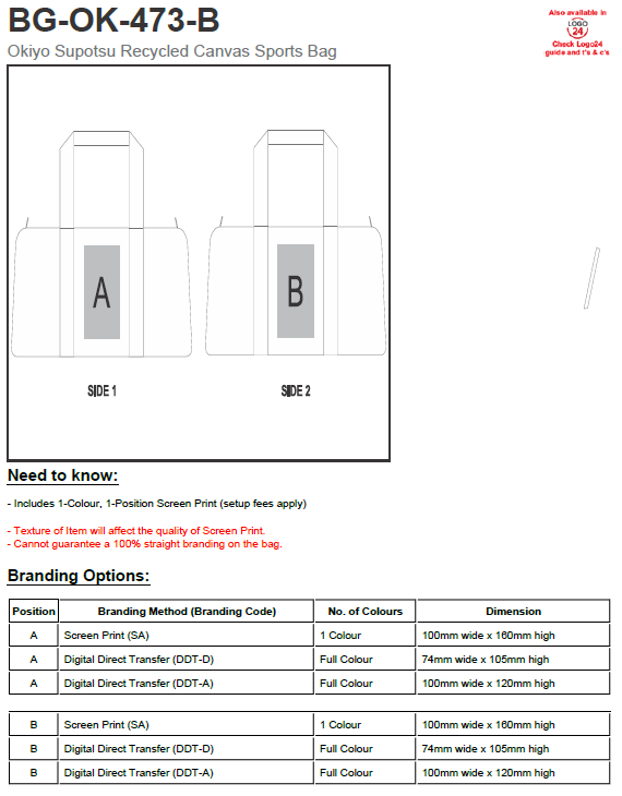 Okiyo Supotsu Recycled Canvas Sports Bag