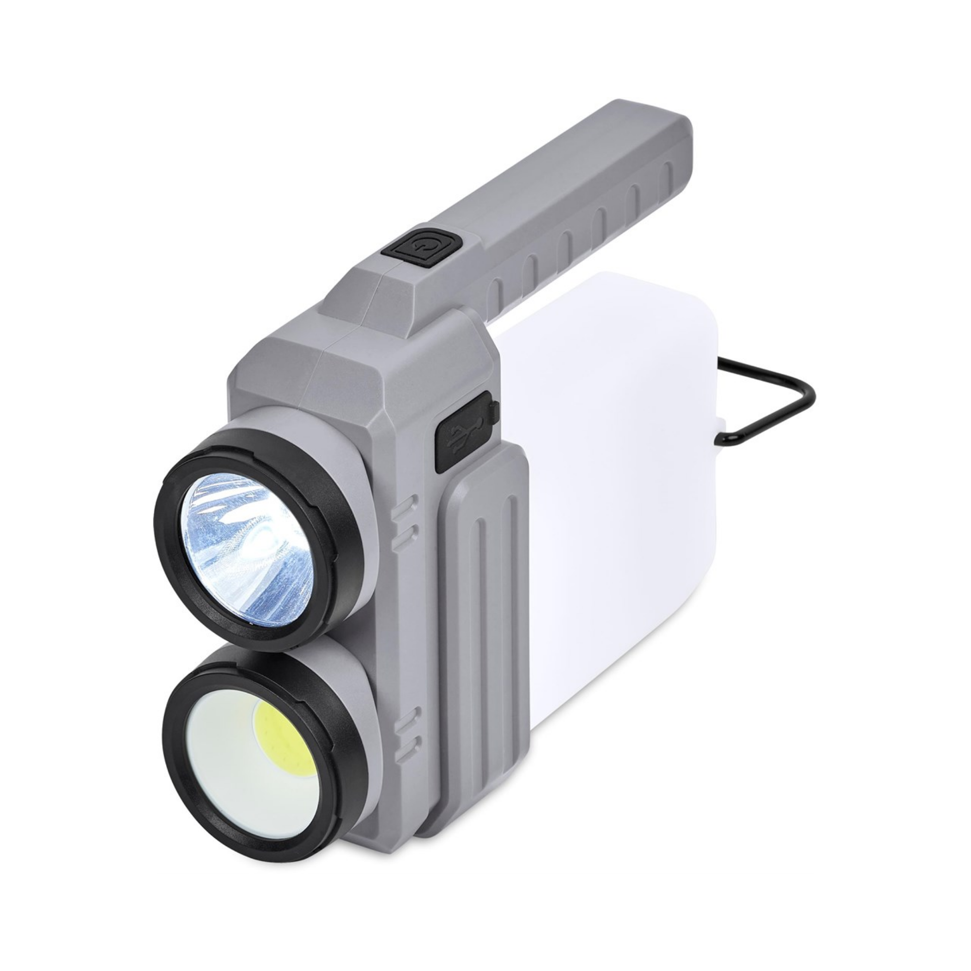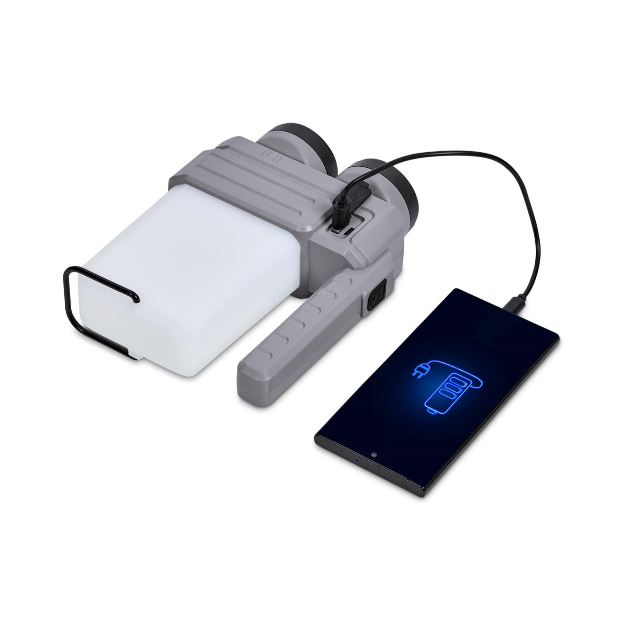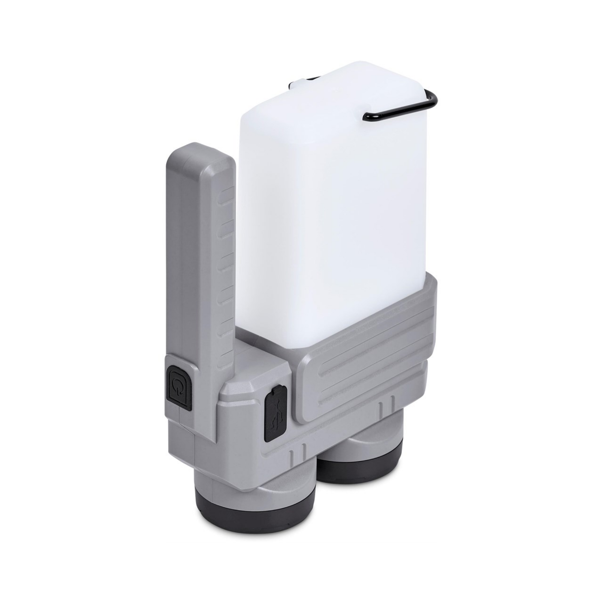 The rechargeable 2,400mAh battery in this multi-functional item powers the lantern and the two flashlights, so you won’t need to buy batteries. It also functions as a power bank to charge your phone. The LED and the COB flashlights give you good options for targeted lighting, while the lantern provides ambient lighting, and there’s a built-in hook to hang it up.