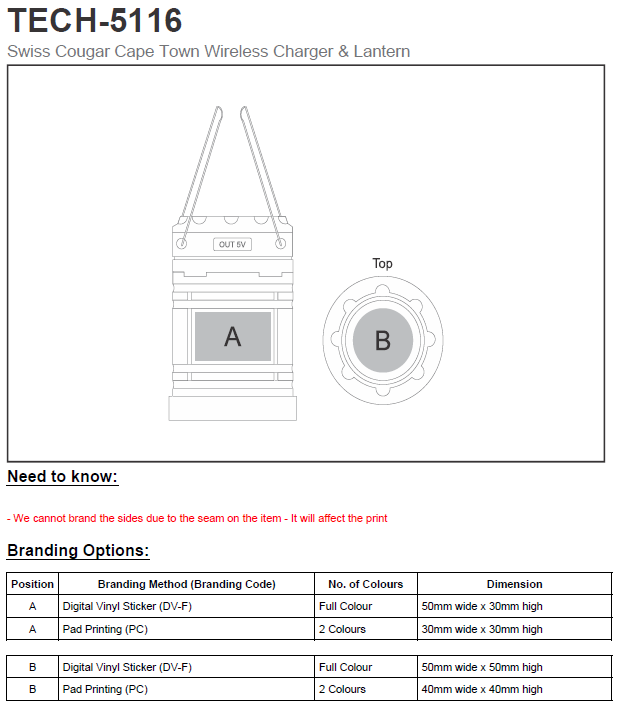 Swiss Cougar Cape Town Lantern & Wireless Charging Power Bank – 4000mAh